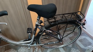 Bicicleta Gazelle, roti 28 din aluminiu, portbagaj solid, sistem de sprijin-suspendare pe sol la roata spate, frana cu tambur la roata din fata, frana torpedo la roata din spate, 3 viteze in butucul Sachs al rotii din spate. Bicicleta are dinam, far, stop, catadioptri, gentuta scule, sonerie, picior ...