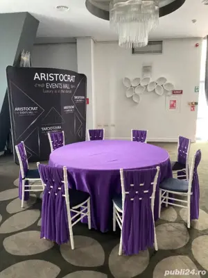închiriem și vindem fețe de masă diverse modele și mărimi huse de scaune servete, precum și alte produse decorative din domeniul decorului de evenimente produsele se pot vizualiza pe Facebook ul nostru sotsisotie.ro