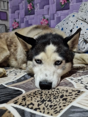 Donez husky siberian ,este băiețel are cam 3 anișori ,este cuminte ascultător și blând, jucăuș și inteligent are ambii ochii albaștri.