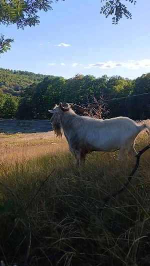 Vând țap rasa saanen, vârstă 1 an și 3 luni, foarte bun pentru montă și docil! Îl dau pentru a evita consangvinizarea. În prima poză este el, iar în ultimele 2 părinții săi( mama are coarne, la fel și el)