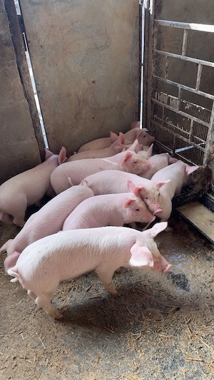 Vând 10 purcele bazna si un vierut compatibil pentru ele, greutate 20-25kg cu adeverință de origine