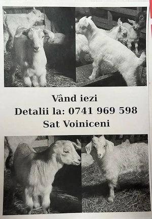 Vând iezi pentru sărbătorile Pascale in satul voiniceni lângă Tg Mureș Prețul este de 26 lei kg in viu și 50 lei kg carcasa Pentru mai multe detali și comenzi la Nr