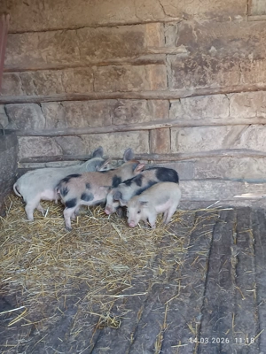 Vând purcei cu greutate cuprinsă între 40-70 kg și porci pentru sacrificat începând de la 90-130 kg.Porcii sunt rasă de carne și sunt crescuți în gospodărie cu cereale.
