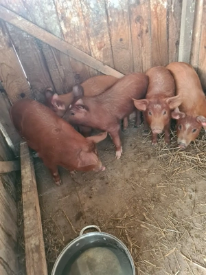 Vand purcei rasa duroc cu varsta de 8 săptămâni. Purcei sunt foarte mancaciosi. Avem disponibili 3 femele și 2 masculi. Locație: Bustuchin Gorj. Pret: 500 lei bucata. Mai multe detalii la telefon.
