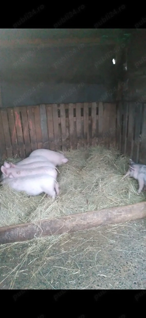 Vand purcei. Mananca foarte bine. Rasa landrax cu marele alb. Am purcei de la 20 kg pana la 100. Vand si scrofite gestante si 2 vieri. Un vier de 70kg si unul de 200. Vand si porci pentru taiat. Pretul este in funcție de marime. Dau la schimb si pe vitei. Pentru orice detaliu sunați.
