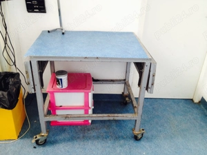 Masa din metal pentru cosmetica animale de companie. Suprafata din otel inoxidabil, cadru robust, stabila si rezistenta chiar si la caini de talie mare. Are margini rabatabile si se poate mari in functie de talia catelului. Prevazuta cu roti pentru o manevrare usoara. Are un suport de contentie metalic ...