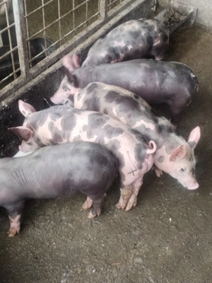 Porci rasa pietrande vanzare intre 120 si 140 kg rasa pietran crescuti natural la tara. 15 roni kg negociabil