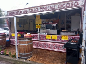 Vand rulota tip fast food adaptata pentru mancaruri traditionale, functionala pe loc. Rulota are toate dotarile necesare, este autorizata DSV, poate fi folosita imediat, trebuie doar racordata la apa si curent. Ideal de amplasat intr-un loc fix cu potential, se pot gati lejer 200-300 de portii de mancare ...