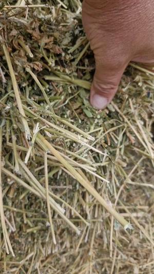 Vind baloti de lucerna și pae de grâu depozitati în finar.