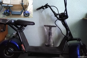 Pret FIX. Fara schimburi! Prefer sa nu vorbesc la telefon (stau si repet tot ce e scris in anunt)! Nu va suparati! Ms! Trotineta Scuter Scooter Motoreta CityCoco Harley Chopper electric 800 W, 12 Ah, 48 V. Functioneaza 100%, excelent. Aspect 85-90% - zgarieturi foarte fine, nu rugina, nu lovituri, ...