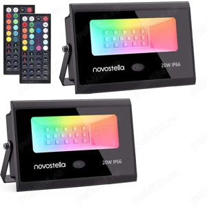 Set 2 proiectoare LED RGB Novostela, 20W, lumina colorata, 2 telecomenzi, IP66, Aluminiu