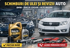 Ofer servicii de întreținere și revizie pentru Dacia Logan și alte modele Dacia. Schimb ulei motor Schimb ulei cutie de viteze Schimb plăcuțe de frână Reglaje și verificări generale Întreținere ușoară pentru mașina ta Lucrări realizate rapid și la preț corect Sunt mecanic particular și ofer servicii ...
