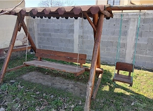 Vând leagăn de grădină din lemn masiv, foarte stabil, cu acoperiș bituminos. Stare bună, fără jocuri sau probleme. Ideal pentru curte sau terasă. Necesită doar o lăcuire. Preț FIX !!