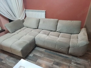 coltar extensibil de calitate pe partea dreapta ,care se potrivește la o gamă f largă de culori ale livingului, cu un design modern în stare impecabila cu ladă și care se extinde cu dimensiuni generoase respectiv 270 170 cm.Are in pachet și 4 perne de aceeași culoare, gri ,perne care au fetele detașabile ...
