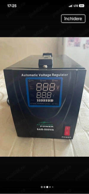 Stabilizator pe relee! Putere 500 VA(300 W-350w putere reala) Distribuie o tensiune constantă și este dotat cu sistem de întârziere pentru protecția aparatelor!