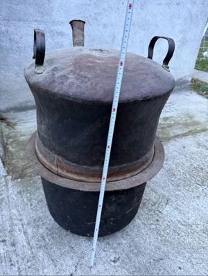 Vand cazan pentru tuica din cupru cu racitor . Partea de jos a cazanului este de aproximativ 60 L.