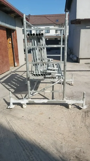 Vand schela metalica mobila pe roti usor de manevrat , dimensiuni la sol lunga 1.70 m lata 1.60 m inaltime pana 7 m .Pret 4000 lei neg