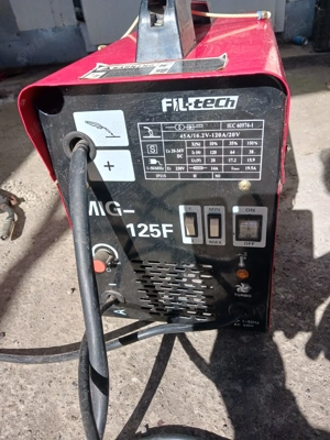 Aparat de sudură MIG-MAG Fil-tech, în stare de funcționare. Poate fi utilizat pentru lucrări de sudură în domeniul auto, construcții și reparații. Dispune de setări de curent și tensiune pentru a se adapta la diferite tipuri de lucrări.