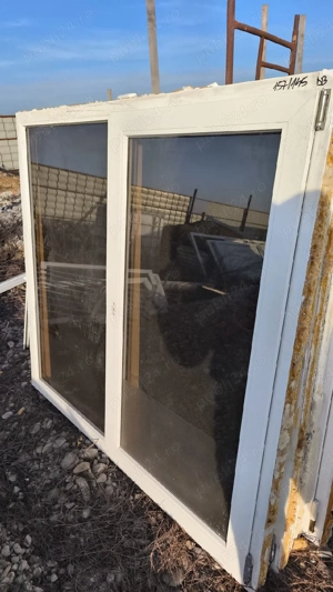 Sunt două geamuri de termopan cu dimensiunea de 171 lungime pe 147 înălțime.. Fiecare este format din două geamuri fixe pe lateral și unul cu dublă deschidere pe mijloc 7 cm grosimea tocului Gealan.. Prețul este pe bucată Produse aproape noi..