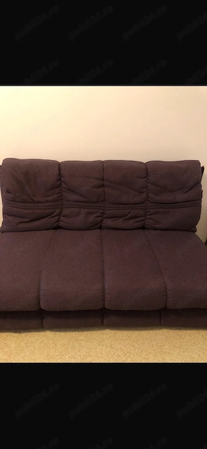 O canapea culoare deosebita, mov inchis, extensibila, mecanism metalic, folosita ocazional.