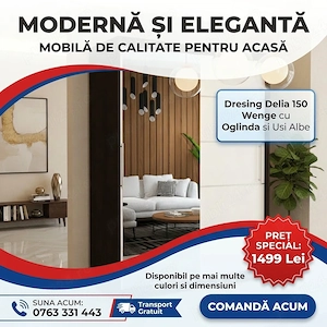 Dresing Delia 150 Wenge cu Oglinda si Usi Albe Model elegant Dormitor nou preț bun