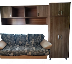 Vand mobila dormitor (canapea extensibila, dulap incapator + corp suspendat cu rafturi) Dimensiuni: dulapul are 80 cm latime, cca 230 cm inaltime, are bara pentru umerase si o polita, corpul suspendat are 200 cm lungime, 85 cm inaltime. Mobila este de calitate, facuta la comanda din pal rezistent. Se ...