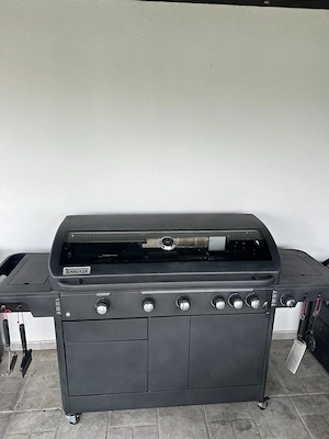 Grătar pe gaz Tenneker Halo TG5 U 7 arzătoare suprafață de gătire 48x120 cm fontă include termometru în capac, tavă de colectare grăsime, suport tacâmuri, masă laterală. Grătarul este în stare de utilizare, cu un design robust și durabil. Ideal pentru a găti în aer liber și a organiza evenimente cu prietenii ...