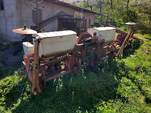 Semanatoarea de porumb,Gaspardo, pe 4 rânduri ,patine noi, cauciucuri noi, pinioane metalice.Stare bună de funcționare. +Freza verticala pegararo,2,5 m, 700 eu"