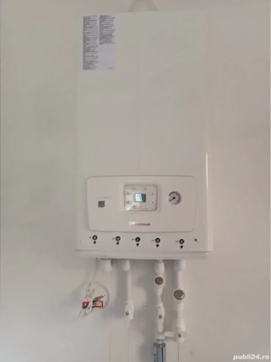 Centrală termică pe gaz NOUĂ. Doar a fost montată pe perete dar nu am folosit-o , deoarece nu am reușit să definitivez actele necesare pentru instalarea unei instalații exterioare. Dețin toate documentele și factura. PREȚUL ESTE NEGOCIABIL. Puteți suna la sau la