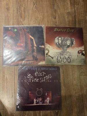 Se pun la bătaie 3 viniluri rock cu diferite trupe. Le vand deoarece numai detin un spatiu in prealabil pentru ele si m-as bucura daca le-ar lua cineva sa si faca o colectie faină. Numai sunt interesat de ele. Au facut parte din colectia propie. Au pastrate corespunzator. Vreau sa le vand cât mai repede ...