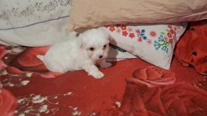 Baietel bichon maltez toy,are cinci săptămâni, Mănâncă bobițe ,învățat cu copiii, forte jucăuș. Mai multe detali la tel.