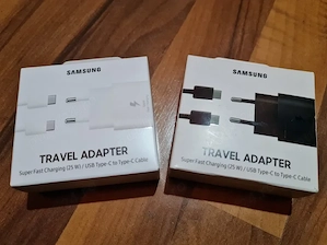Adaptor Incarcator priza retea + cablu de date USB C la USB C original Samsung 25W Super Fast Charging. Produsele sunt noi, sigilate in blister. Provenienta incarcatoarelor este Samsung Electronics Romania, deci produse autentice 100%. Produsele se pot vinde si separat, pretul incarcatorului fiind de ...