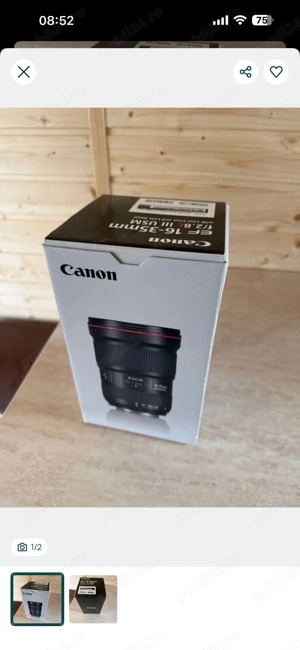 : Obiectiv Canon EF 16-35mm f 2.8L III USM Nou, sigilat Preț:3300 lei Vând obiectiv Canon EF 16-35mm f 2.8L III USM, nou, în cutie originală. Obiectivul nu a fost folosit niciodată. Face parte din seria profesională Canon L, oferă o calitate excelentă a imaginii, autofocus rapid și construcție premium. Detalii: ...