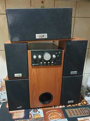 Vand un sistem audio Genius Genius SW-HF5.1 5005 Sistemul arata si functioneaza perfect Ofer proba inaintea vanzari Sistemul se poate vedea si testa in Bucuresti sector 4 Berceni Pentru tara sistemul se poate livra prin curier Specificatii Genius SW-HF5.1 5005 Cherry Sistem: 5.1 Tip boxe active Tehnologie: Wired Putere ...