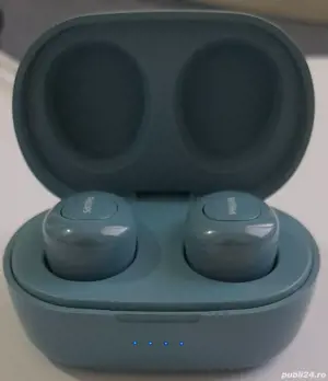 Castile nu sunt noi dar sunt in conditii optime de utilizare. Fara cablu de alimentare. Eu foloseam cablul telefonului. Casti Audio In-Ear Philips, TAT2205BL 00, True Wireless, Autonomie 4h, Albastru Descriere Clasa IPX4 de rezistenta la stropire si transpiratie Tocul mic de incarcare este cat se ...