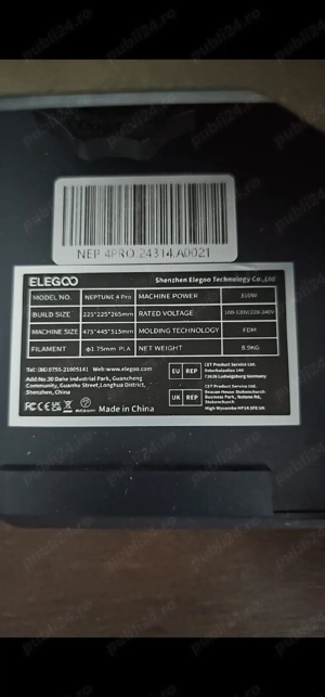 Imprimanta 3D Elegoo Neptune 4 Pro, in perfecta stare, folosita de 5 ori, silentioasa si precisa. Vand impreuna cu inca 6 filamente:1 ABS 5 PETG