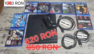 Vand tot pachetul din poza, toate in stare bună. Functionale. PS4 Slim cu 1TB spatiu de stocare + 1 controller + 8 jocuri. Se adauga la pret 20 de lei livrarea. Mesaj în privat.