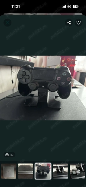 Vând PS4 Slim 500GB cu 2 controllere și dock de încărcare. Perfect funcțional, carcasa și controllerele sunt în stare bună, prezintă mici urme de uzură. Consola include cablu HDMI și cablu de încărcare obișnuit (Tip C). Dock-ul de încărcare folosește priză de tip G (Anglia), însă se poate utiliza fără ...