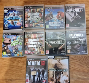 Vând PlayStation 3 Slim, nemodat, în stare bună și perfect funcțional. Pachetul include: consolă PS3 Slim 2 controllere: 1 original 1 GameStop 9 jocuri Jocurile incluse sunt: PlayStation All-Stars Battle Royale Grand Theft Auto V Ice Age 4: Continental Drift Arctic Games Call of Duty: Black Ops ...