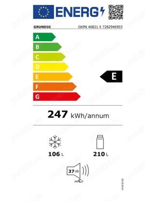 Combina frigorifica GRUNDIG GKPN46821X, No Frost, 316 l, H 186 cm, Clasa E, argintiu Caracteristici generale Tip aparat frigorific Combina frigorifica Volum net total (l) 316 Volum net frigider (l) 210 Volum net congelator (l) 106 Afisaj Panou comanda LED Electronic Sistem de racire No Frost Numar ...