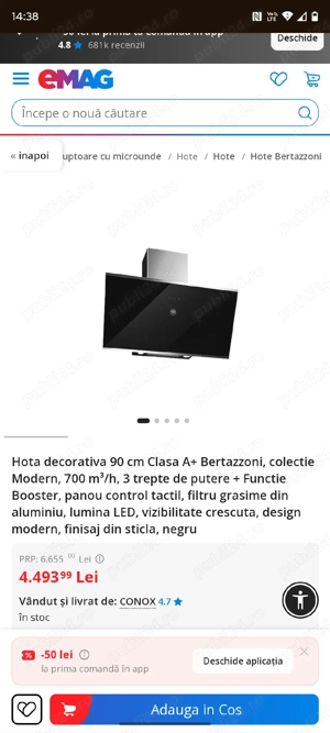 Hotă decorativă Bertazzoni, nouă. Cu un motor puternic, este alegerea perfectă pentru bucătăria ta modernă. Am comandat-o online și nu mi se potrivește cu mobila de bucătărie. Nu a fost folosită niciodată! Ofer livrare personală în Oradea!