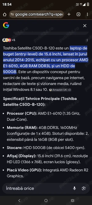 Laptop stare bună funcționare.Lipseste doar un mic adaptor încărcător (15 lei eMag) Compensație mouse optic.