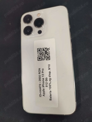 Vand iphone 13 pro, 512 gb, 78% bat, culoare alb, avand folie si husa montate. Vine insotit de cutie cu accesorii si mai multe huse si acte achizitie. Pretul este negociabil. Pentru alte detalii contactati-ma. Design Touch Screen SIM tipul de card nano-SIM si eSIM Numar nuclee procesor 6 nuclee Frecventa ...