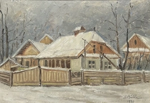 Ioan Balau 1980 Tablou Peisaj de Iarnă Gospodărie Țărănească pictură în ulei înrămată 40x52cm Preț 1000 Lei Ioan BĂLĂU (1906 - 2001), s-a născut, la Popeşti, jud. Iaşi. Studii: Academia de Arte Frumoase, Iasi, Romania. A studiat cu: Stefan Dimitrescu, Octav Bancila, Nicolae Tonitza. A fost prezent ...