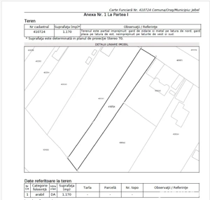 Teren intravilan pretabil constructii de vanzare in Jebel. FOXFORT propune teren intravilan pretabil constructii de vanzare in Jebel, avand o suprafata de 1300 mp, numar fronturi 1 si deschiderea de 14 ml la strada. Caracteristici teren: regim de inaltime permis Parter + Etaj + Mansarda. Pe teren se ...