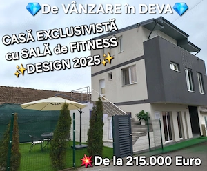 CASĂ EXCLUSIVISTĂ cu SALĂ de FITNESS la parterDESIGN 2025 LOCUINȚĂ PREMIUM si sau INVESTIȚIE LA CHEIE Vă propunem spre VÂNZARE o proprietate de referință în Deva, zona Zăvoi (Aleea Luceafărului), imediat lângă complexul rezidențial Primavera, creată special pentru cei care caută perfecțiunea. CONFIGURAȚIE ...