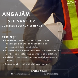 Katar Conneg angajează Șef Șantier în Suceava și Neamț