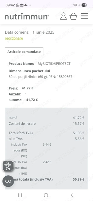 1 cutie Junior Omni Lactis 6, data expirare 31.10.2026, 1 cutie ColonBalance Sticks, data expirare 30.04.2027, comandate de pe site-ul Biogena si ramase nefolosite