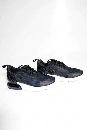 Adidași Nike Air Max 270, model pentru copii, într-o nuanță elegantă de negru complet (Triple Black). Marimea 32 interior 20.5 cm Sunt ideali pentru uz zilnic, școală sau activități sportive ușoare, oferind confortul legendar al pernei de aer vizibile pe 270 de grade. Plasă respirabilă la exterior, ...