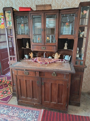 Vând un bufet forte vechi perioada interbelică nu știu exact anul de fabricație ..necesită restaurare.